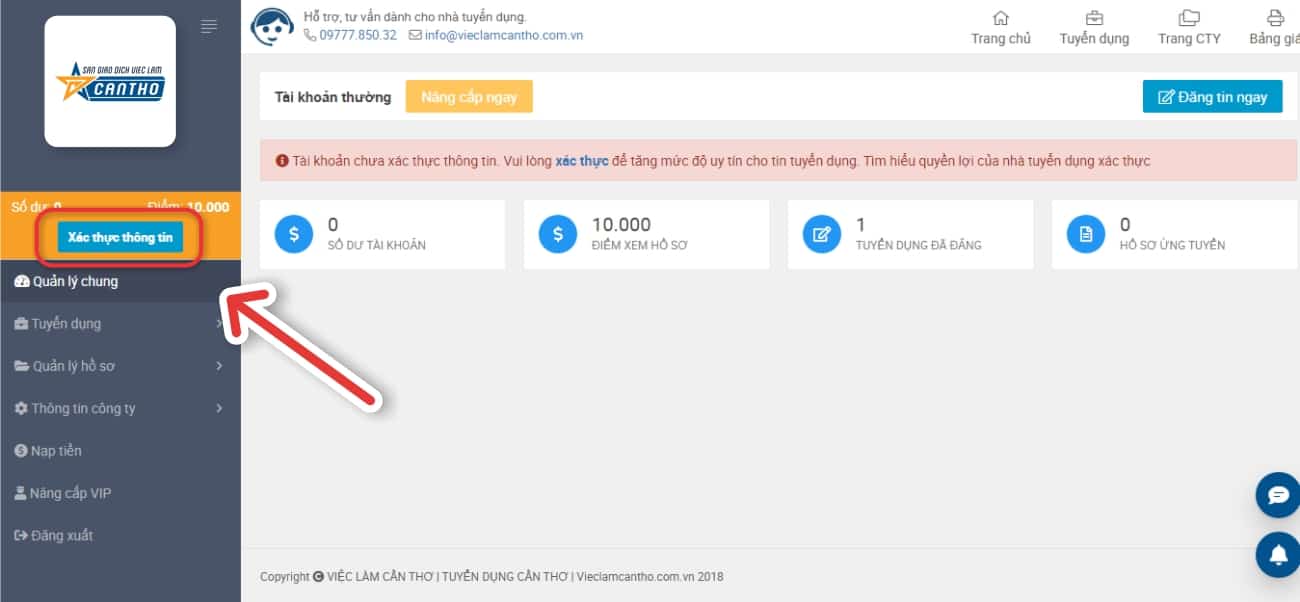 Nhà tuyển dụng khi tiến hành xác minh thông tin tài khoản sẽ đạt được những quyền lợi và ưu đãi nhất định từ Website Sàn Giao Dịch Việc Làm Cần Thơ.
